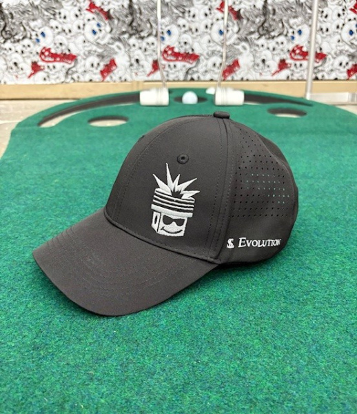 The stylish SL Evolution Piston Pro 1golf hat, featuring the piston head shape logo, with Black and Silver embroidered logos, this give a visual statment of power on the green.